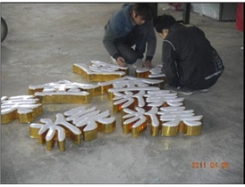 吸塑字也是一種發(fā)光字,板面通常使用亞克力板吸塑成型,再由底座等組合而成。其內(nèi)部置入LED燈或是高壓燈,表面工藝有平面、平鼓、球鼓、棱鼓等形式,箱體材料有鐵皮烤漆、鋁型材、不銹鋼、鈦金等。